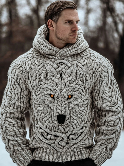 Men's Viking Inspired Celtic Wolf Chunky Hooded Sweater
