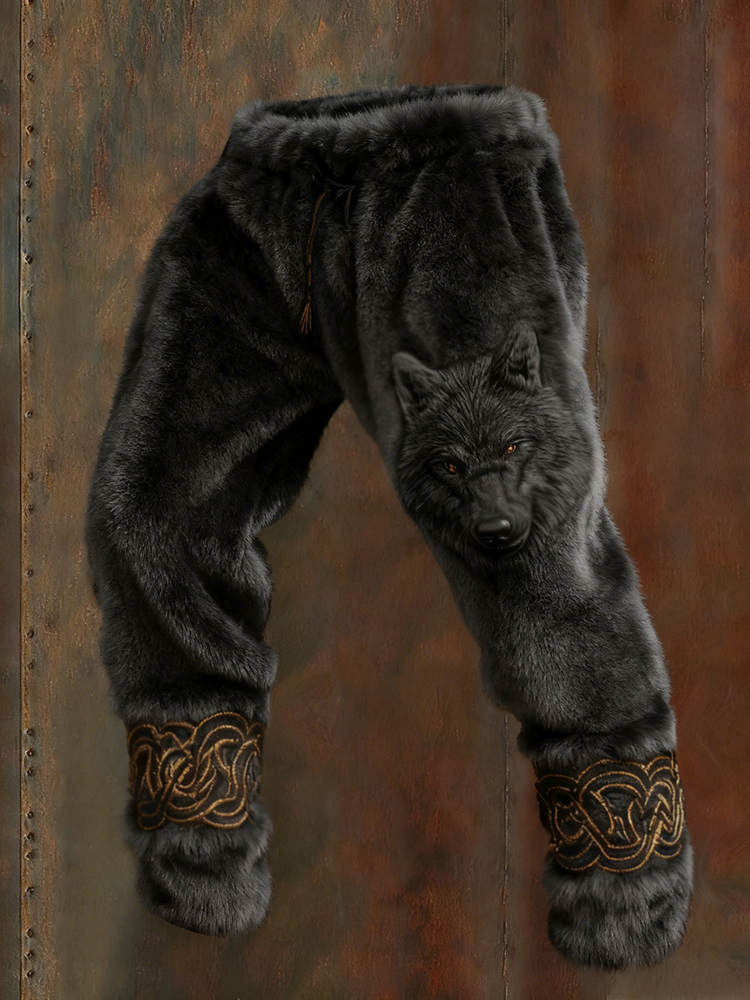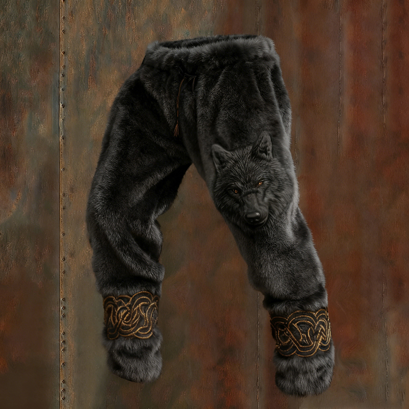 Men's Vintage Viking Celtic Knot And Wolf Art Plush Pants