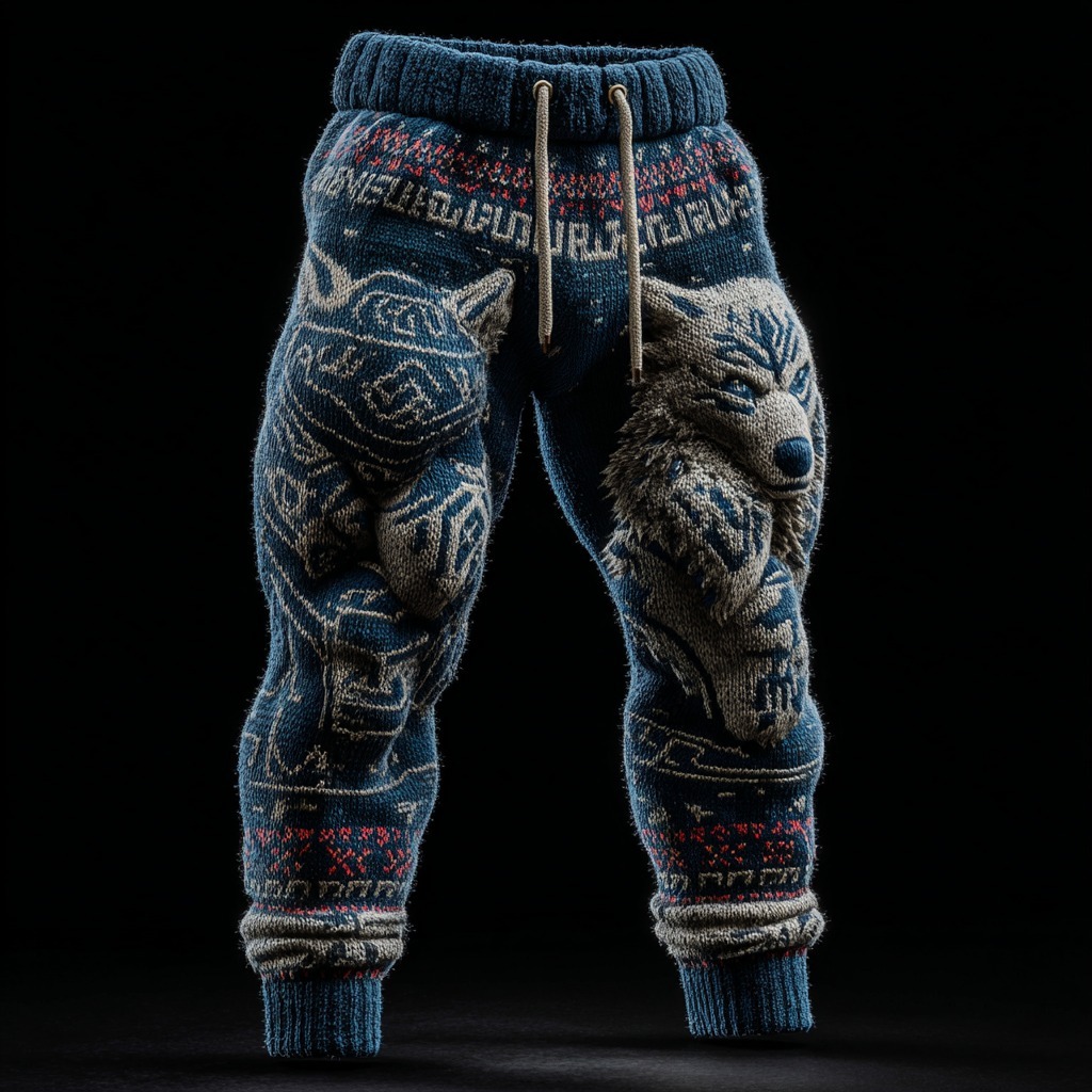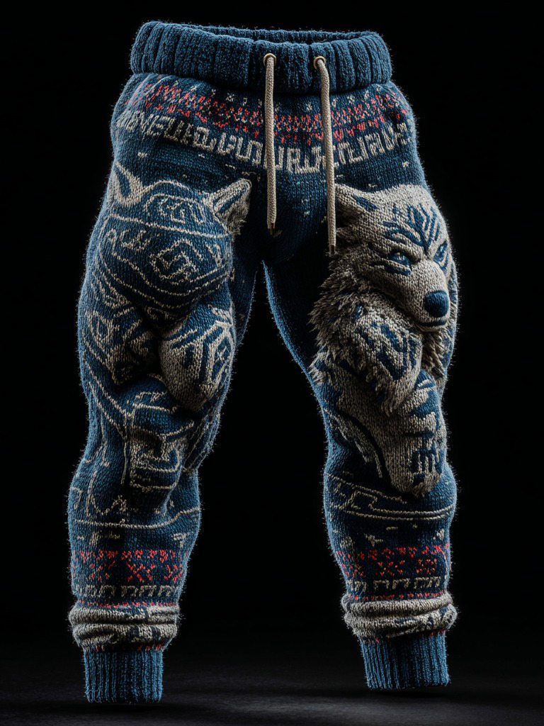 Men's Vintage Viking Wolf And Rune Knit Jacquard Warm Pants